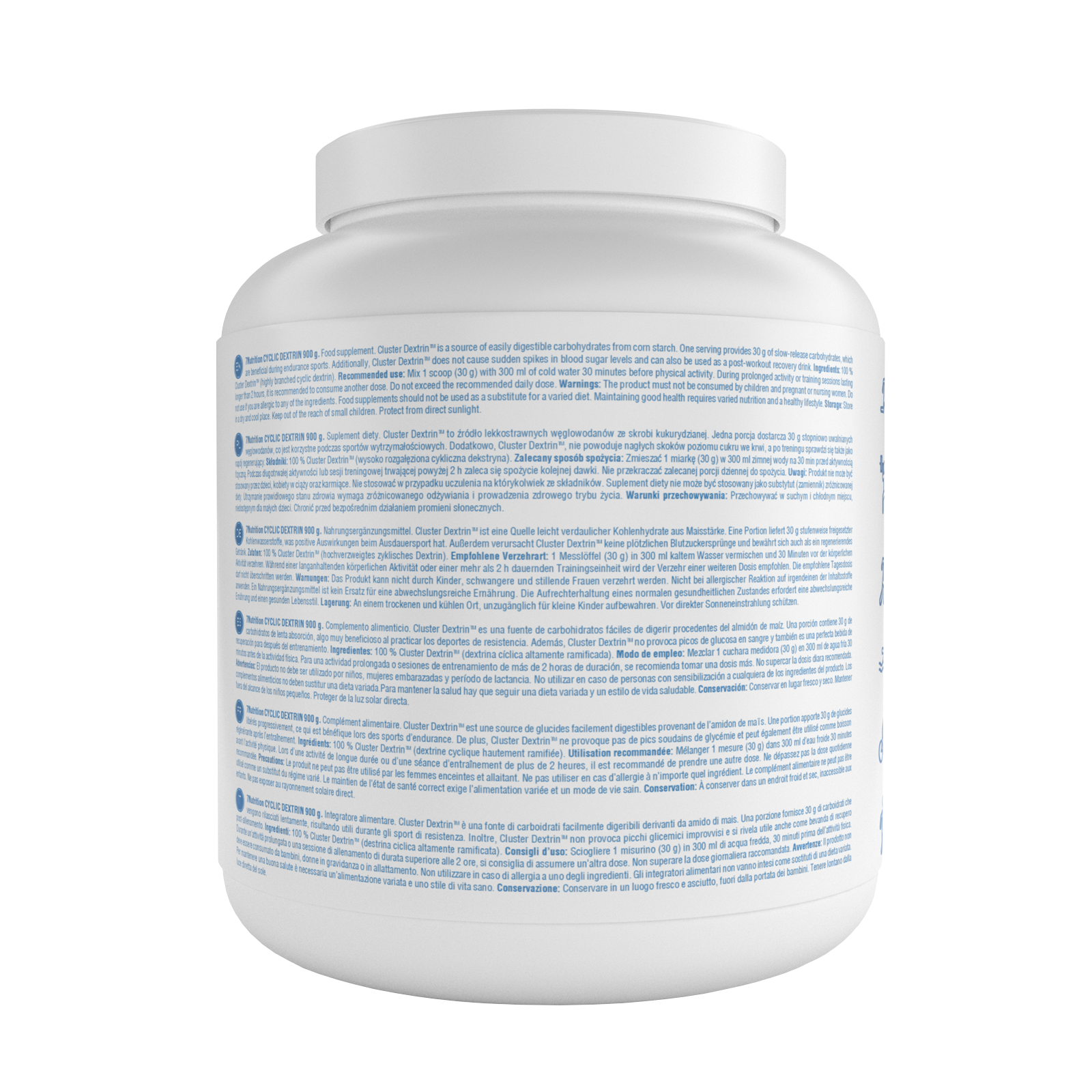 W badaniach wykazano, że cykliczna dekstryna poprawia zdolności wysiłkowe, zwiększa wytrzymałość i pozwala sportowcom osiągać lepsze wyniki bez uczucia przeciążenia przewodu pokarmowego. Jest idealna do stosowania zarówno przed, jak i w trakcie długotrwałego wysiłku fizycznego, a także jako składnik napojów regeneracyjnych po zakończeniu treningu.