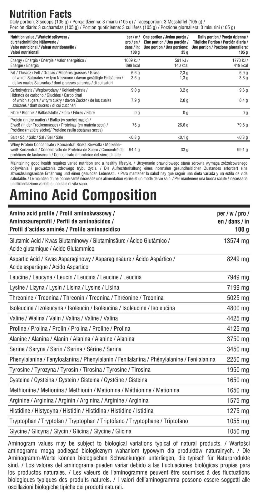 *Wartości aminogramu mogą podlegać biologicznym wahaniom typowym dla produktów naturalnych.
