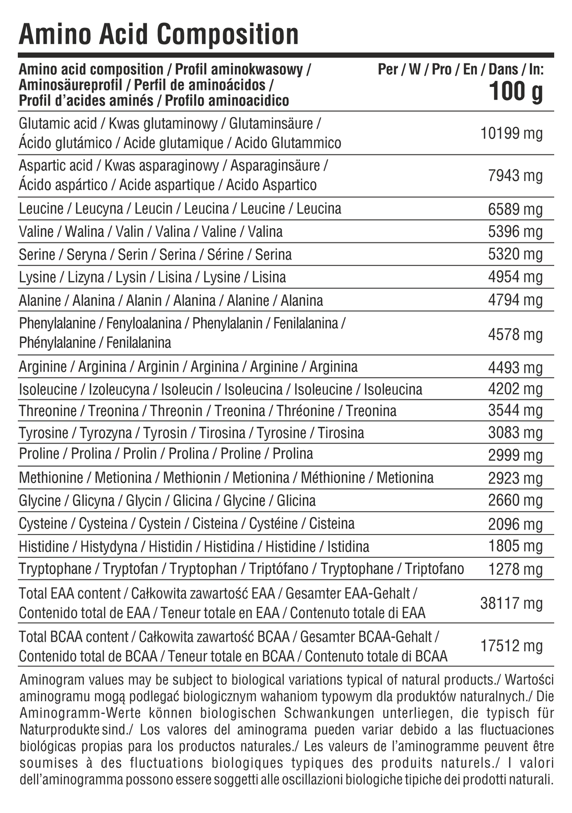 Wartości aminogramu mogą podlegać biologicznym wahaniom typowym dla produktów naturalnych.