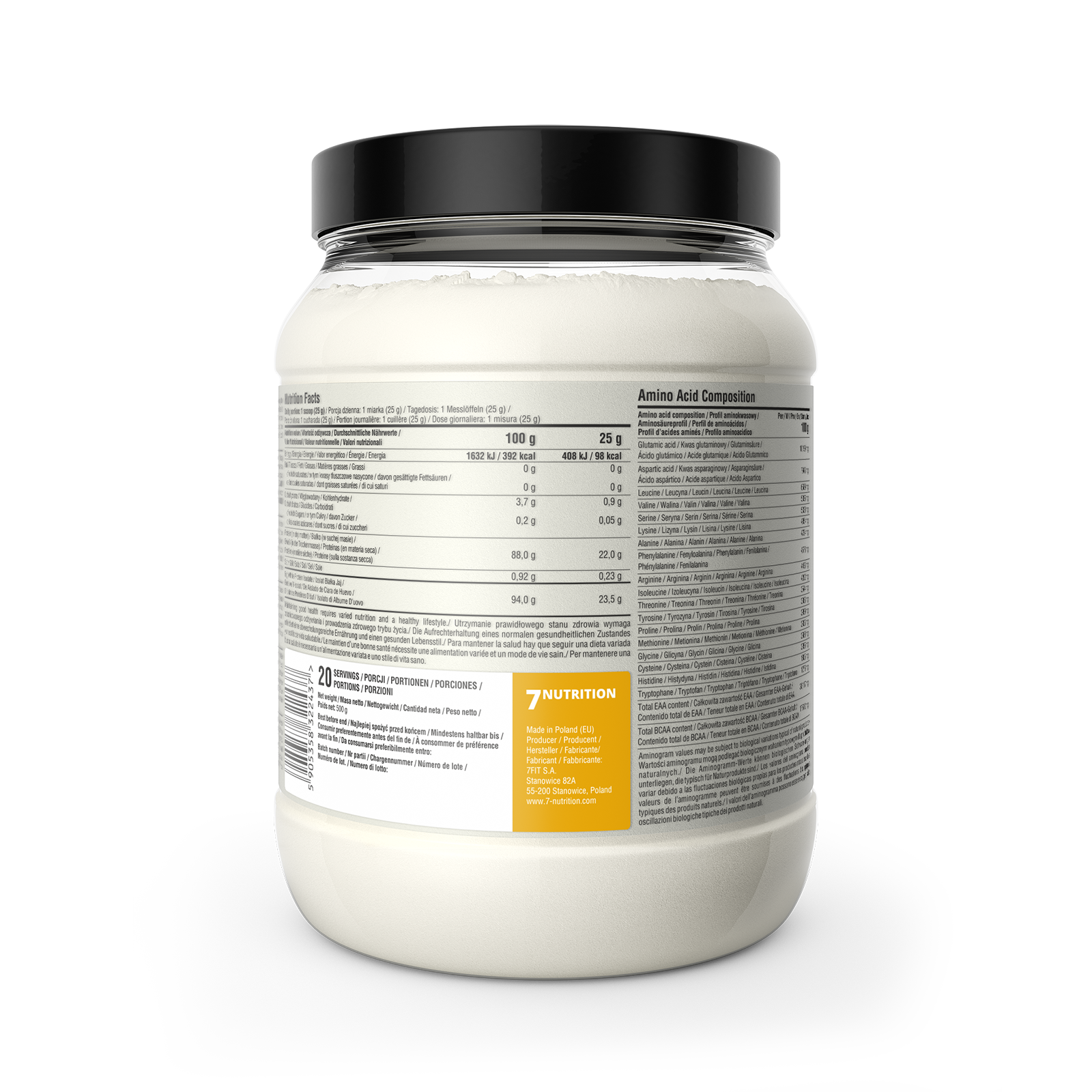 7Nutrition Egg Protein Isolate to izolat białka jaj, oferujący wysoką czystość i przyswajalność – aż 94 % w jednej porcji. Ta unikalna forma białka dostarcza wszystkie niezbędne aminokwasy, w tym leucynę, wspierając budowę i regenerację tkanki mięśniowej. Dzięki płynnej konsystencji proszku, suplement doskonale sprawdza się jako szybki i wygodny sposób na uzupełnienie białka – czy to w porze dnia, czy przed snem.
