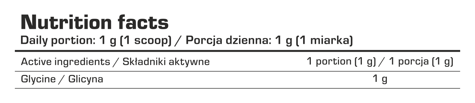 Glicyna to najprostszy z 20 aminokwasów białkowych, który stanowi wsparcie układu nerwowego (poprawia pamięć i koncentracje). Wykazuje właściwości antyoksydacyjne oraz wspomaga budowę mięśni.