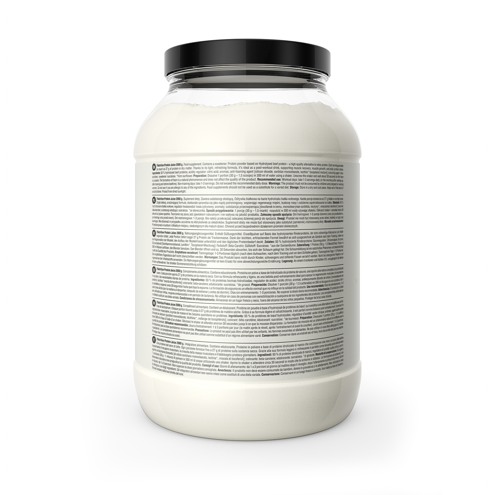 Odżywka białkowa na bazie hydrolizatu białka wołowego. Każda porcja dostarcza aż 27 g białka w suchej masie. Dzięki lekkiej, orzeźwiającej formule, doskonale sprawdza się jako napój potreningowy, wspierając regenerację mięśni, budowę masy i codzienne zapotrzebowanie na białko. Protein Juice nie zawiera cukru i ma klarowną formułę, co oznacza, że bardziej przypomina orzeźwiający napój niż klasyczny, mleczny koktajl białkowy. Jest dostępny w 7 pysznych smakach, takich jak: tropikalny, czerwona oranżada, truskawka-malina, wiśnia-jabłko, mango-ananas, pina colada, arbuz-truskawka.