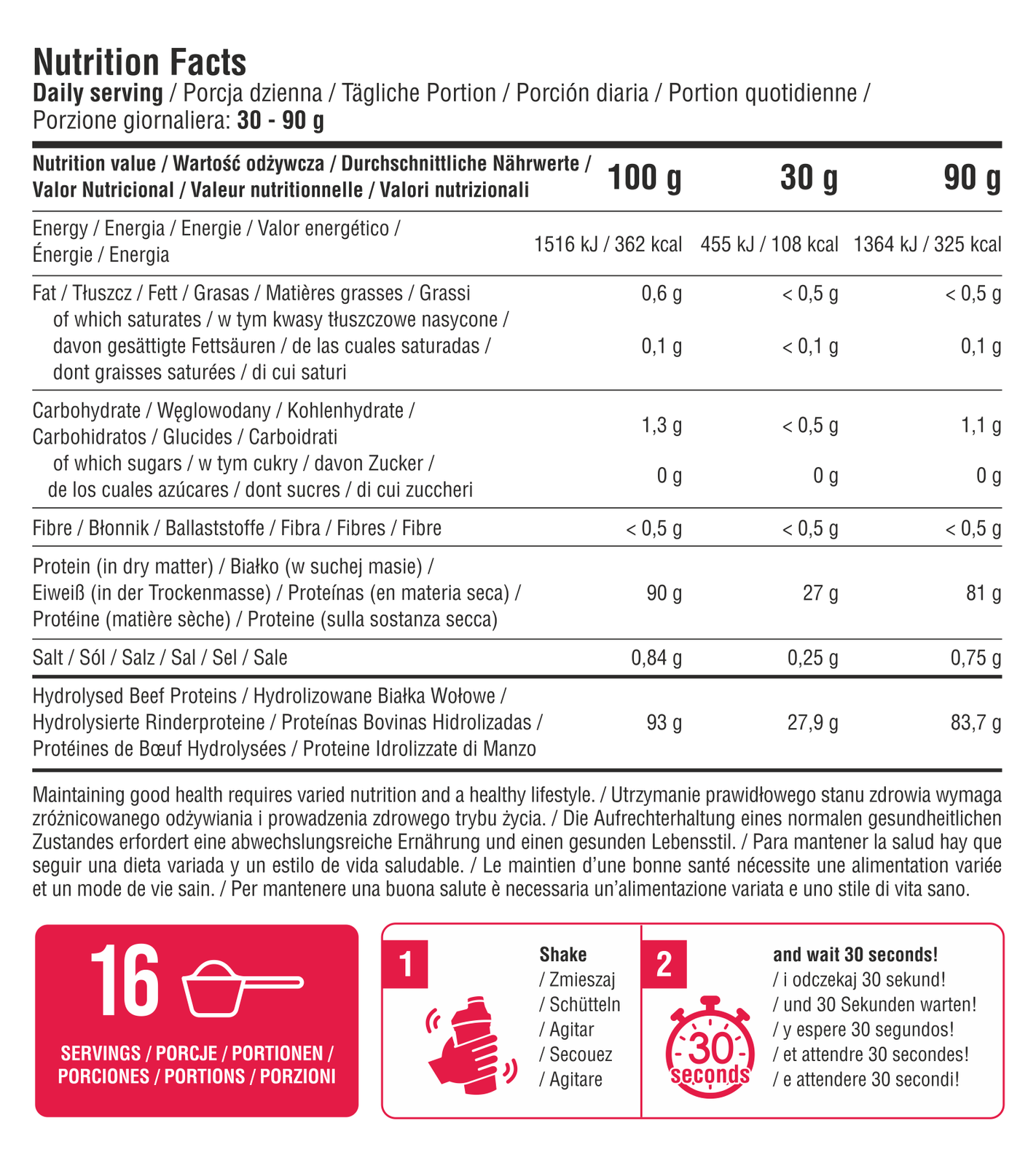 Hydrolizowane białka wołowe | 93 g | 27,9 g | 83,7 g |