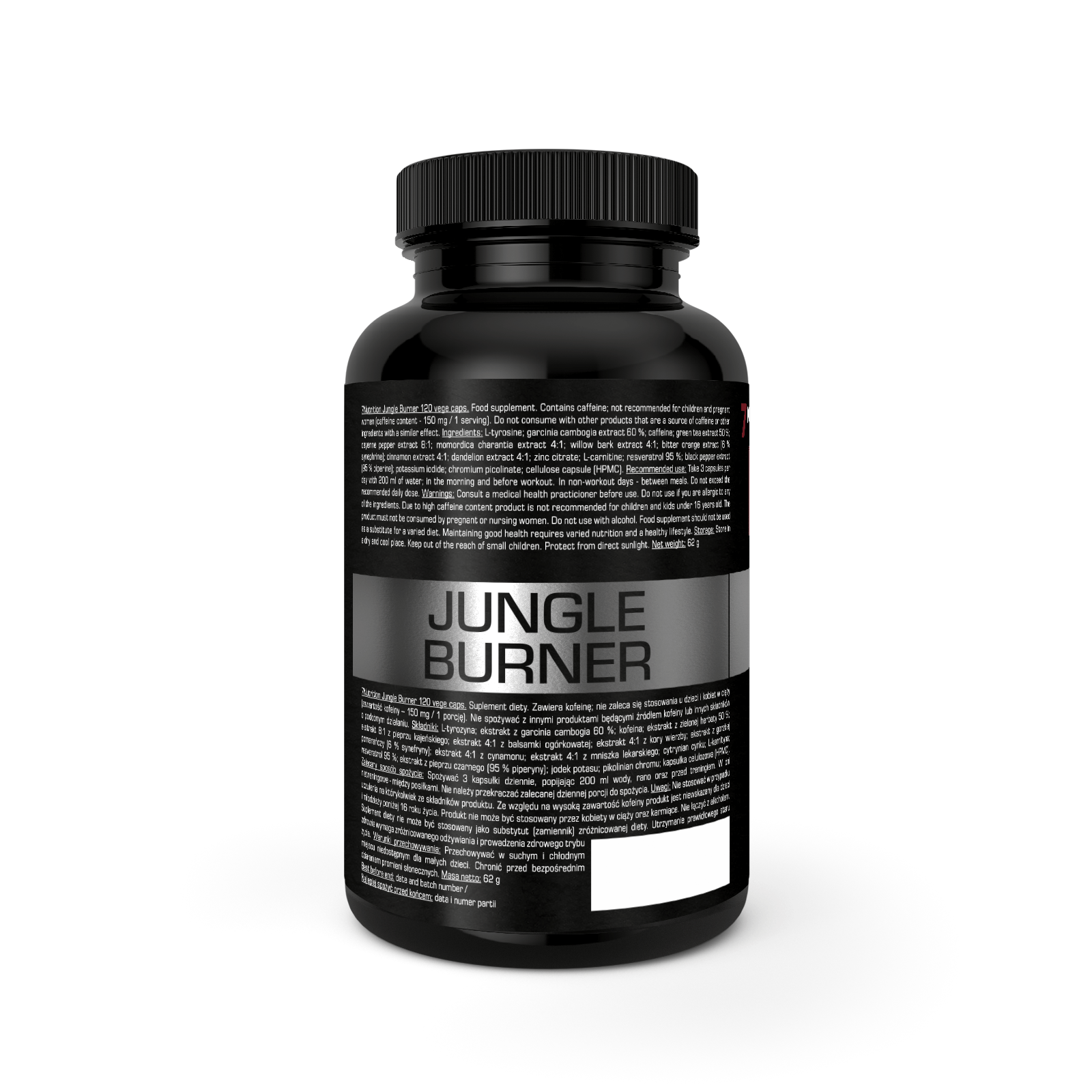 7Nutrition Jungle Burner to zaawansowany suplement diety stworzony z myślą o osobach, które poszukują wsparcia w procesie redukcji tkanki tłuszczowej, kontroli apetytu i poprawie samopoczucia psychofizycznego. Produkt łączy ekstrakty roślinne, naturalne termogeniki, adaptogeny oraz minerały wspierające metabolizm i równowagę hormonalną.