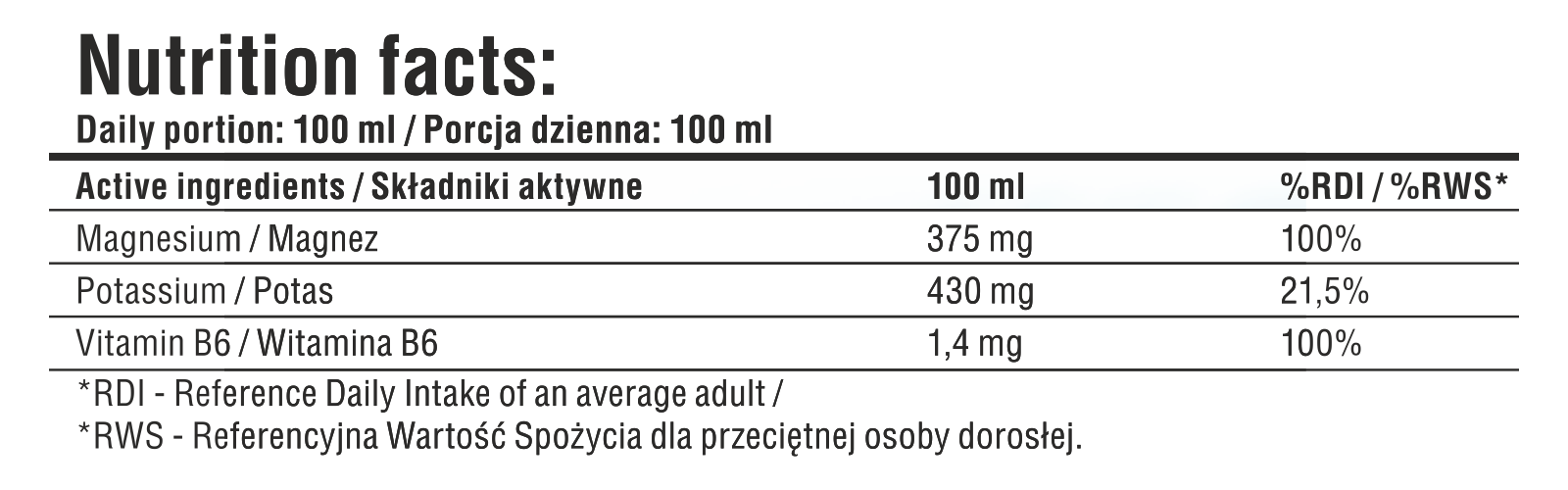 %RWS – Referencyjna Wartość Spożycia dla osoby dorosłej.