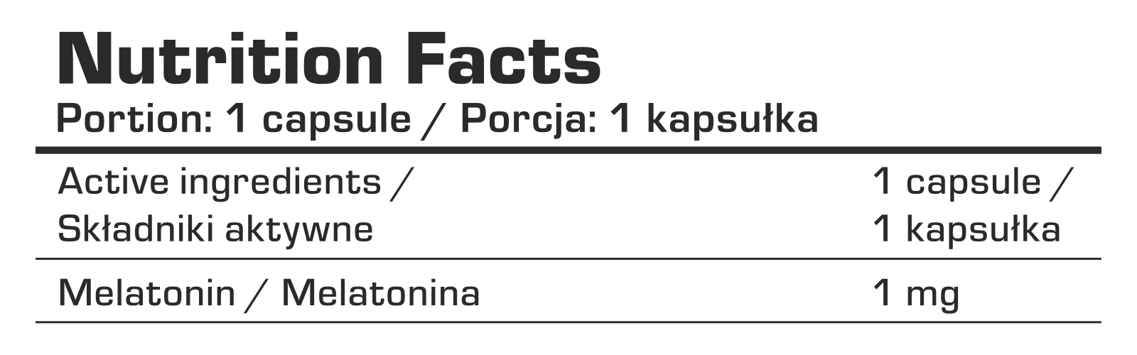 Składniki: Melatonina; substancja wypełniająca - inulina; kapsułka celulozowa (HPMC).