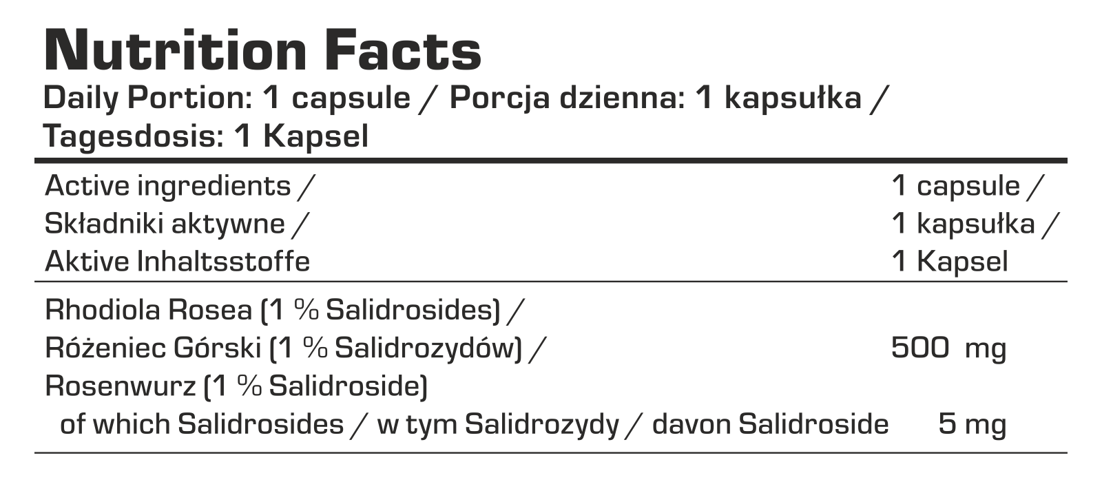 SKŁADNIKI: ekstrakt z różeńca górskiego (1% salidrozydów); kapsułka celulozowa (HPMC)